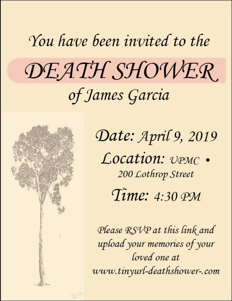 The term “Death Shower” is a nod to the well-known “Baby Shower” in which party members “shower” the person who is expecting, typically the soon-to-be-mother, with presents in anticipation of the birth of the child. Our Death Shower hints at this anticipation while creating a space for people to celebrate the entirety of a person’s life, who we will be referred to as “loved one”, in stark contrast to counting down the seconds to their death.